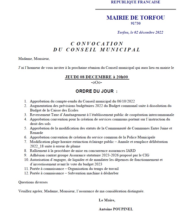 Article précédent : Conseil Municipal du 8 Décembre 2022